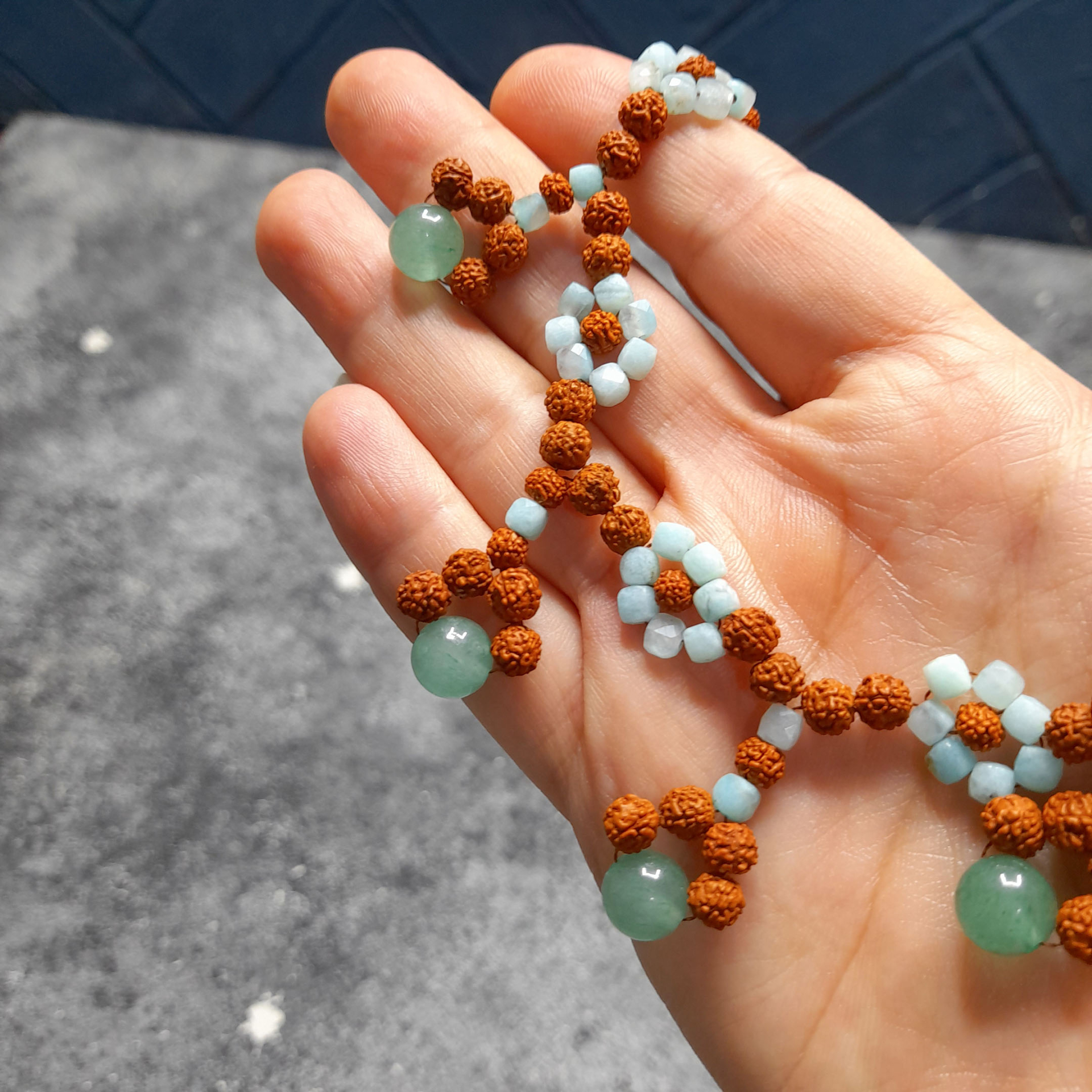گردنبند رودراکشا وعقیق سبز کد 320072