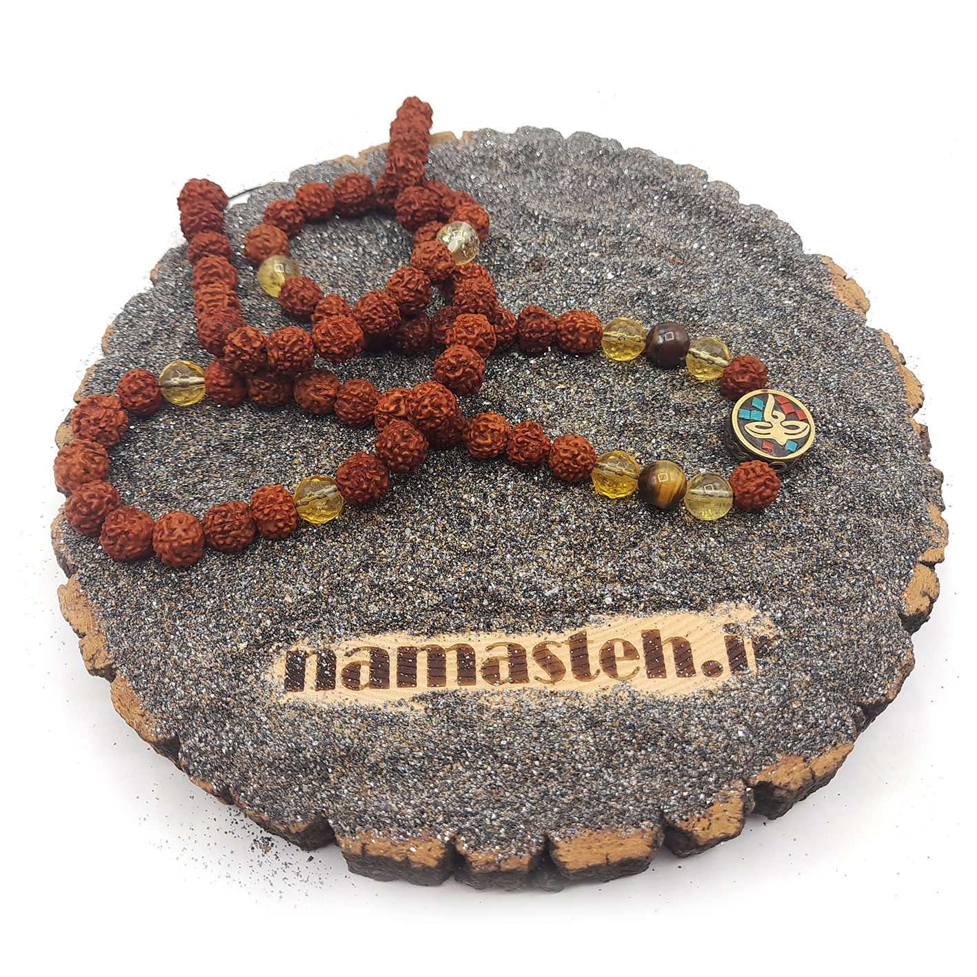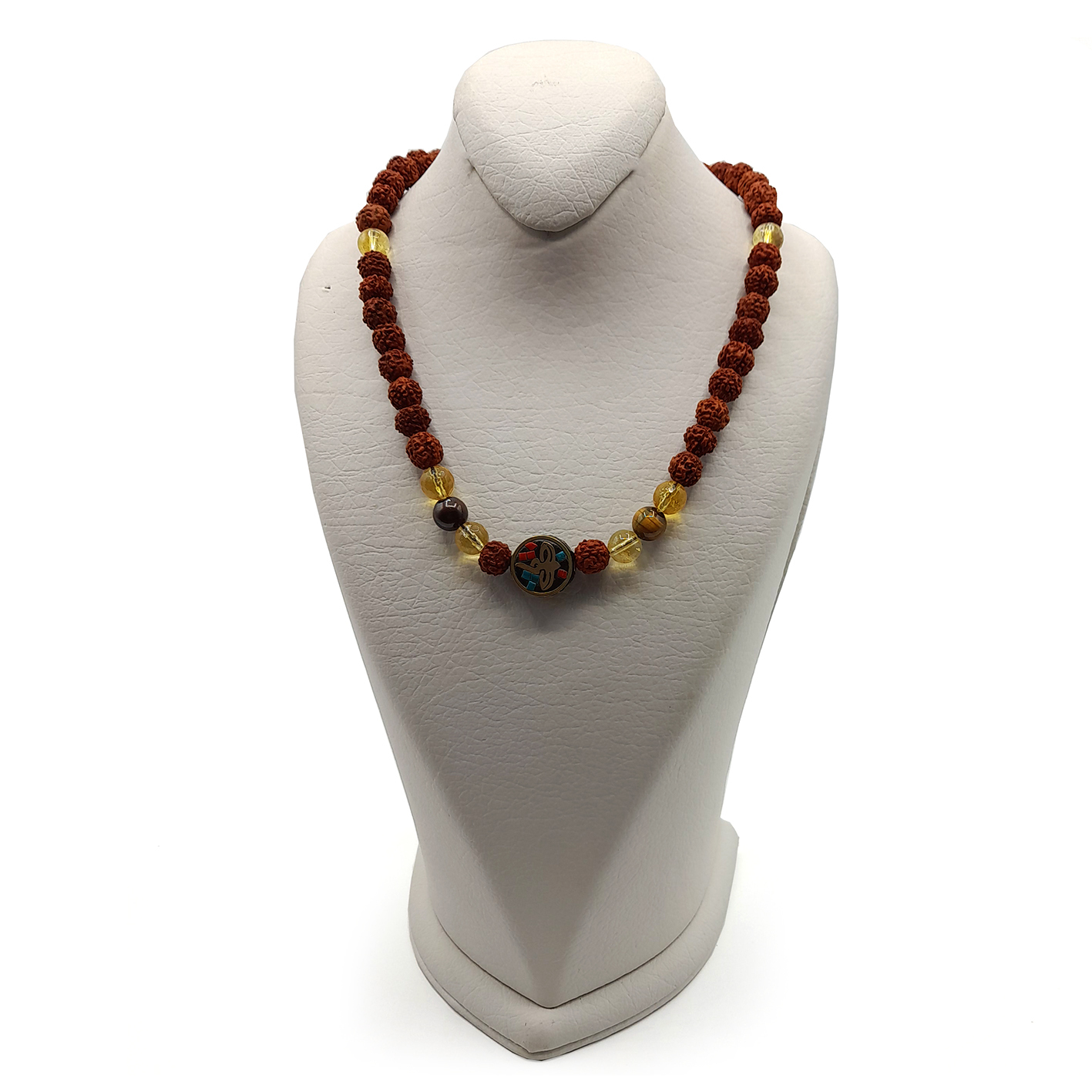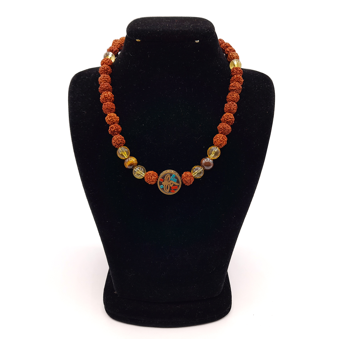 گردنبند رودراکشا سیترین وچشم ببر وپلاک تبتی کد 320058